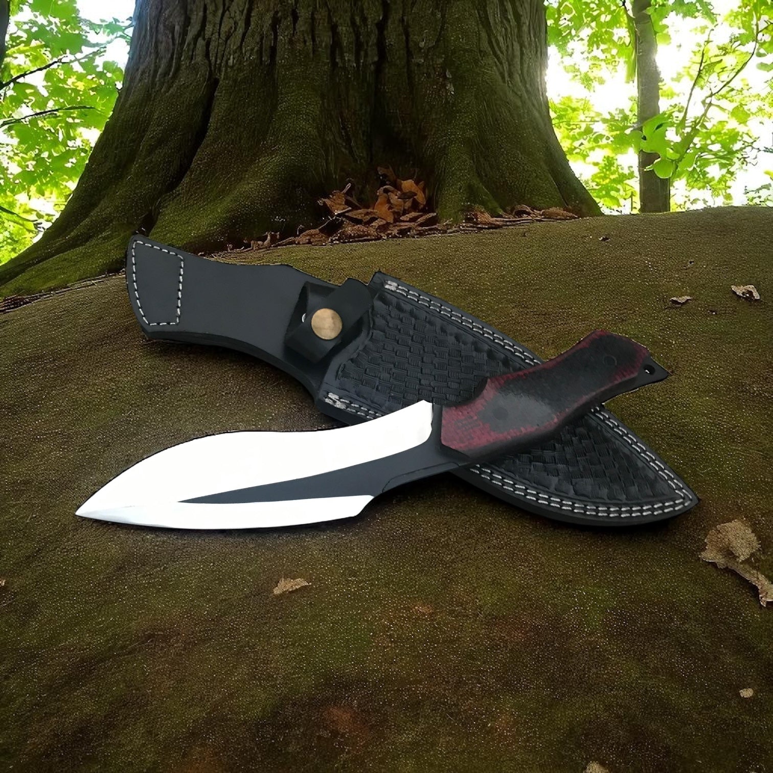 This 13-inch full-tang bushcraft knife isn’t just another tool — it’s your silent ally in the wild. Designed with raw utility and refined craftsmanship, this blade takes on the toughest terrains with unwavering strength. With a mirror-polished 5mm thick steel blade, it’s made to carve, split, and slice through your every outdoor need — from firewood to field prep.